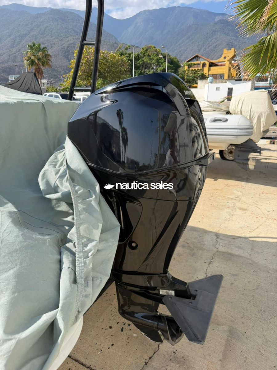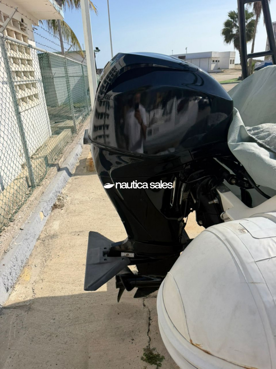 El bote tiene centro de mando a estribor con relojería operativa, asientos con tapicería de color blanco en excelentes condiciones, goma con mantenimientos al día, spoiler, cobertor y trailer.