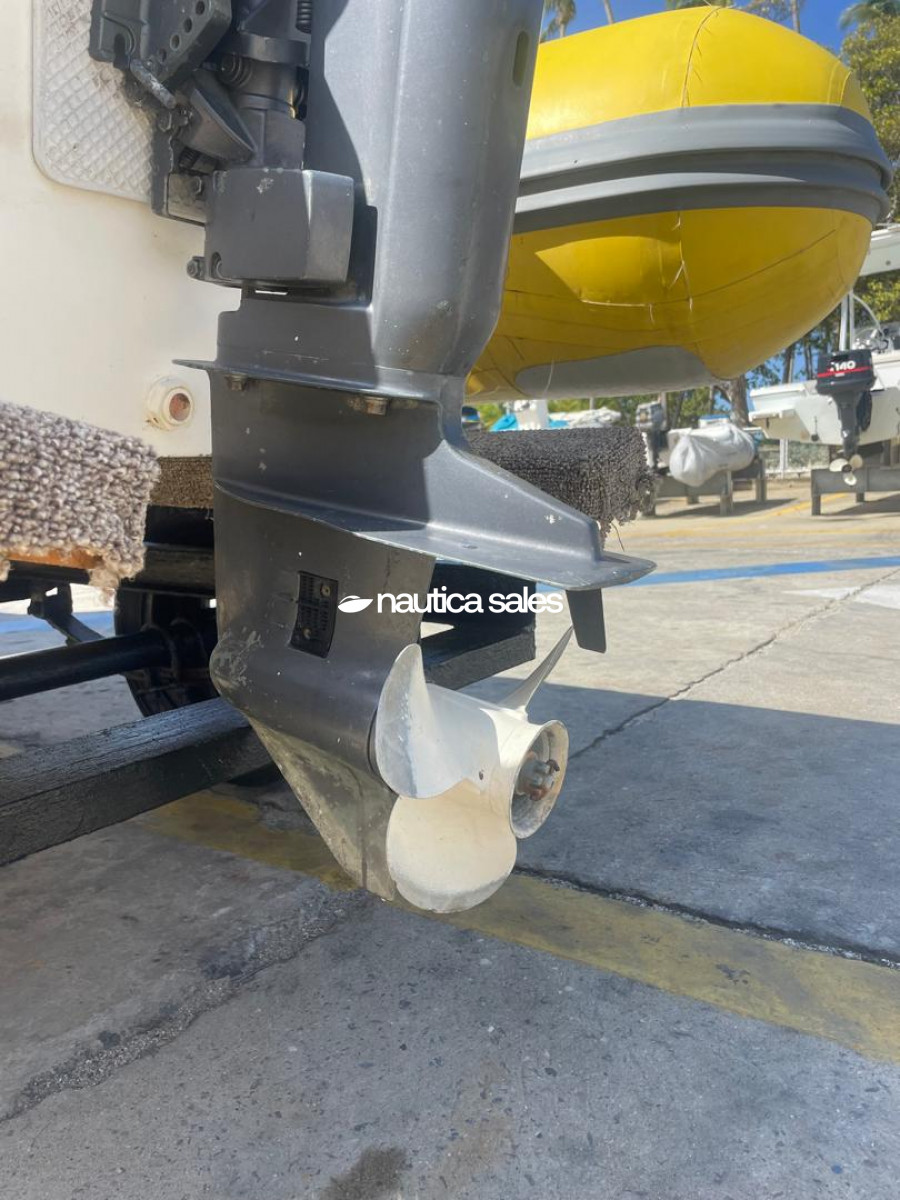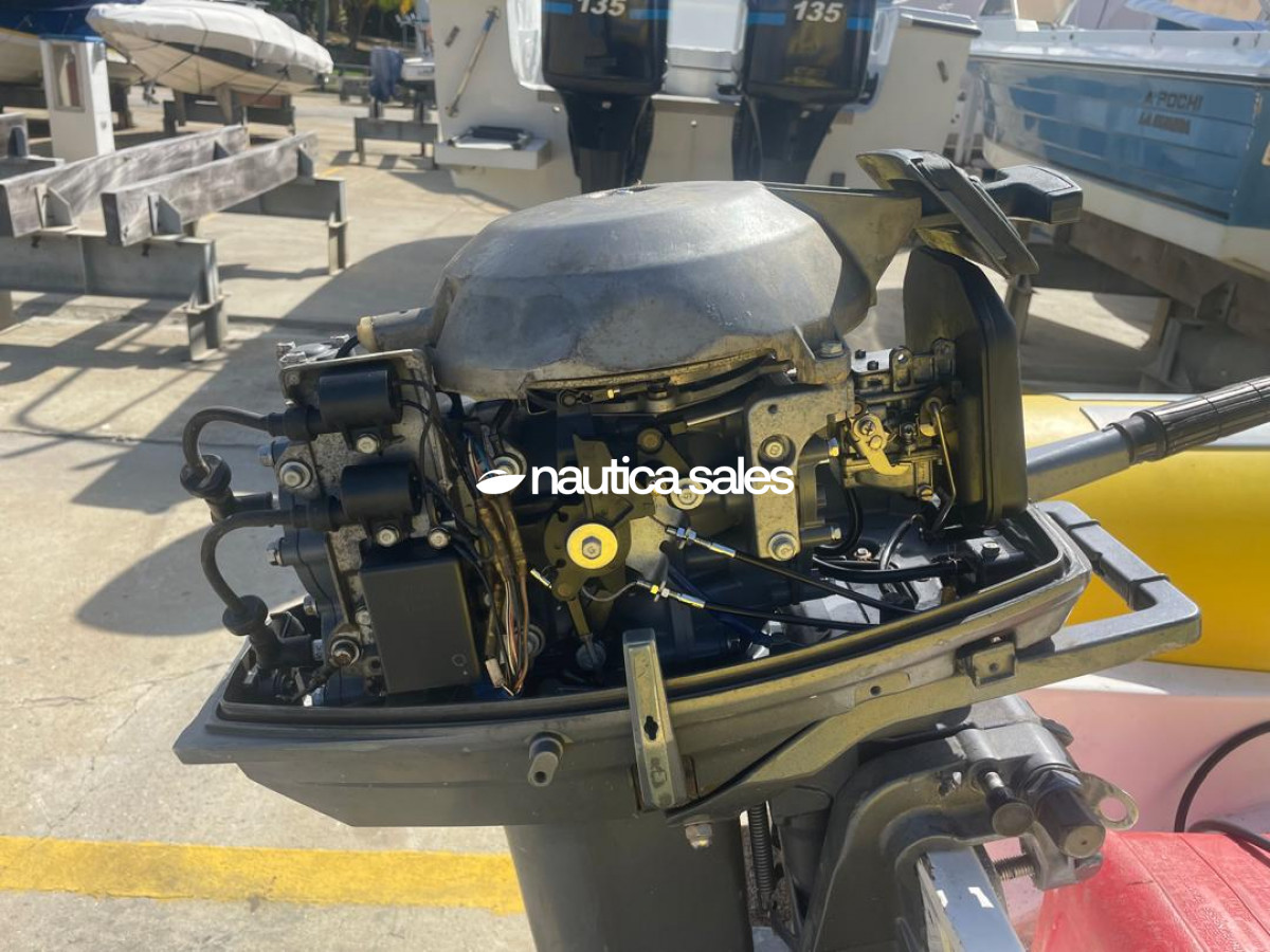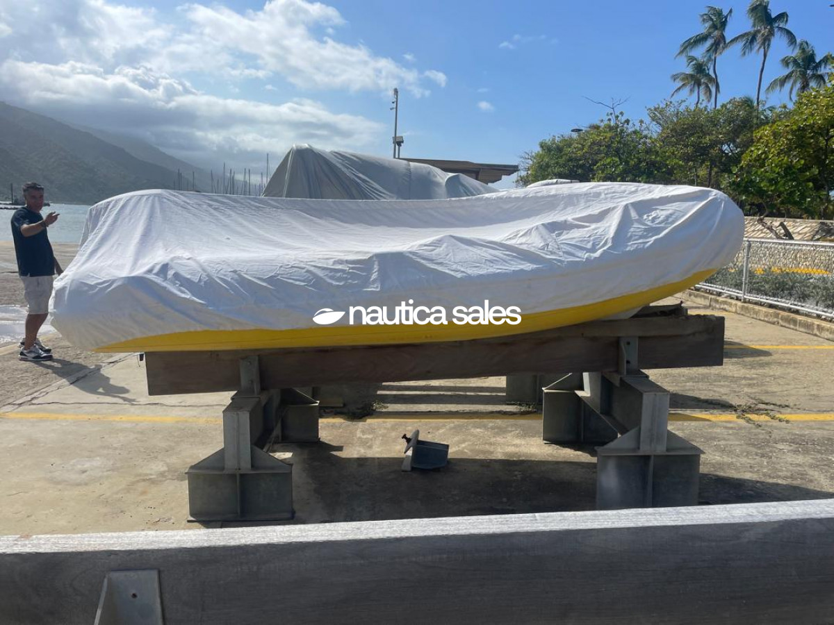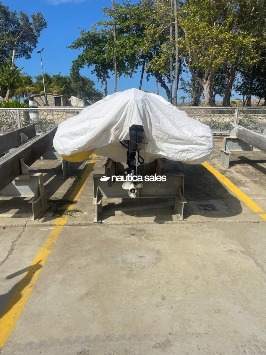 El bote de goma inflable de color amarillo está en buen estado, tiene dos remos, bidón de gasolina, ancla de 3,5 Kg con 1 m de cadena y 30 m cabo, además tiene cobertor y se entrega el bote con 4 chalecos nuevos.