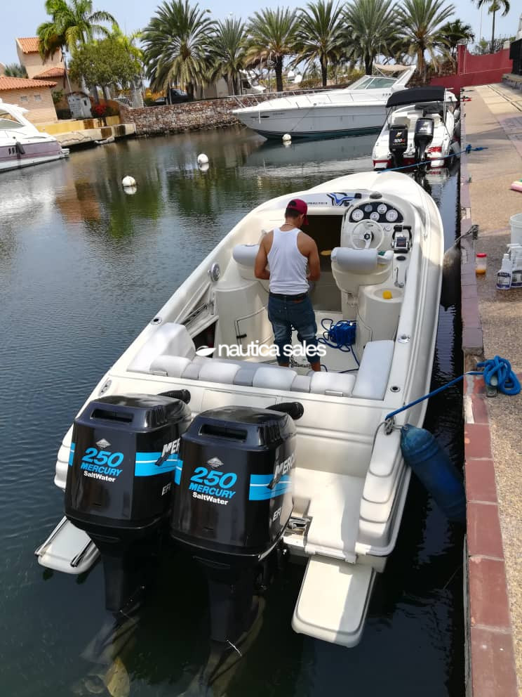 En venta Promarine de 27 pies, del año 2002, con motores Mercury de 250 caballos de fuerza, año 2006, con 430 horas de uso (Estribor nuevo 2021). Dispone de un tanque principal y auxiliar (nuevos) con capacidad para 700 litros en total y un tanque de agua de 70 litros, con tanques, mangueras nuevas y filtros racor nuevos.