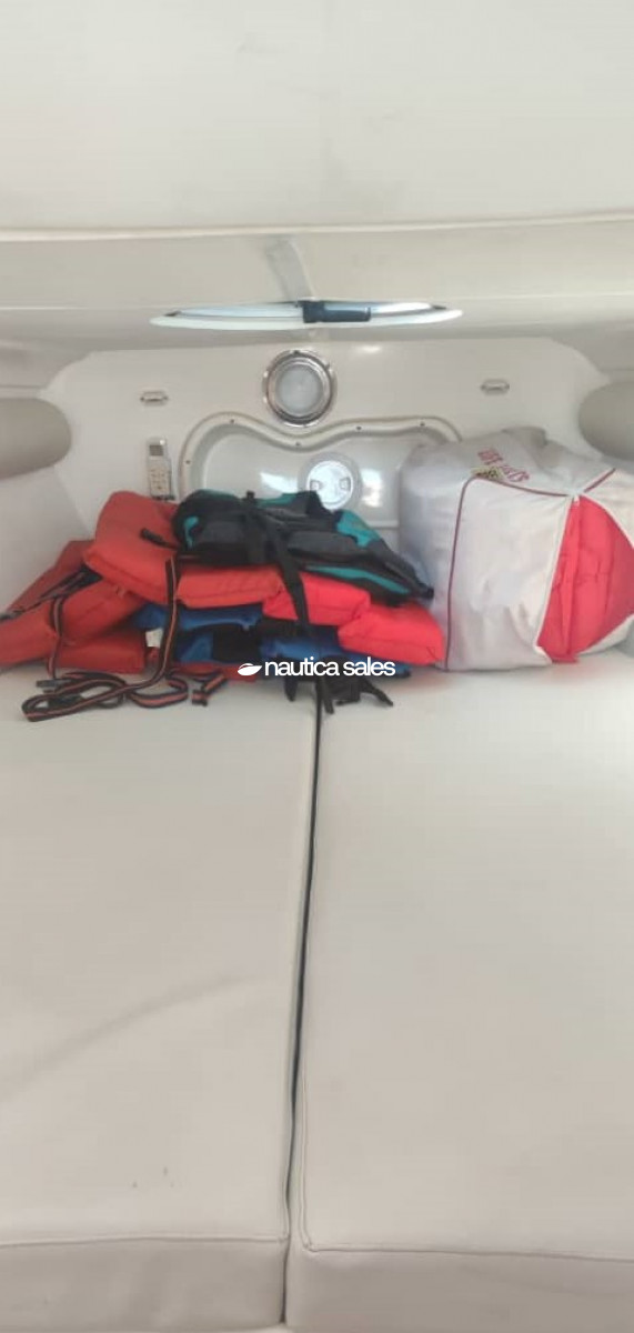 Tiene camarote en proa con aire acondicionado; además la embarcación cuenta con planta eléctrica de 2 kVA, dos plantas de sonido JL audio, tres bajos 10”, dos cornetas 7.7 y dos cornetas 6.6 distribuidas en el área social de popa; dos baterías, un selector de baterías, inverter para 110V, luces de cortesía blancas y azules, dos pilotos LED, lavaplatos, bases para porta esquíes, spoiler y forro completo. El precio de venta incluye el trailer.