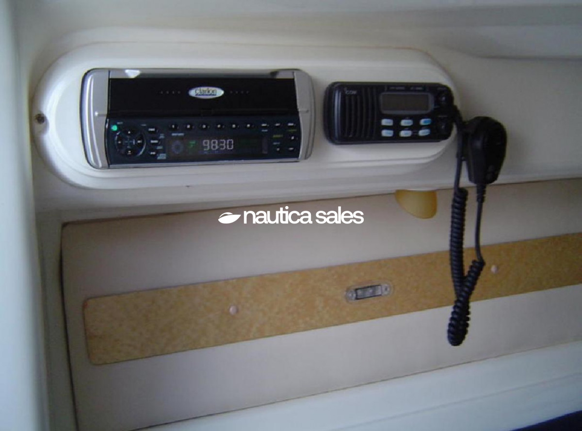 La embarcación con centro de mando ubicado a estribor cuenta con relojería, brújula y radio VHF marca Unidem para la ayuda en la navegación.