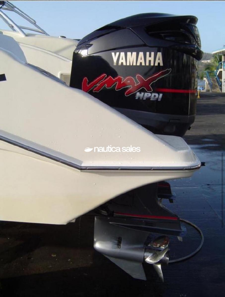 En venta lancha Legacy modelo 330, año 2002, 33 pies de eslora con motores Yamaha de 300 caballos de fuerza cada uno que le permite alcanzar 40 nudos de velocidad máxima; tiene tanque de combustible con capacidad para 1100 litros de gasolina y tanque de agua con capacidad para 360 litros.