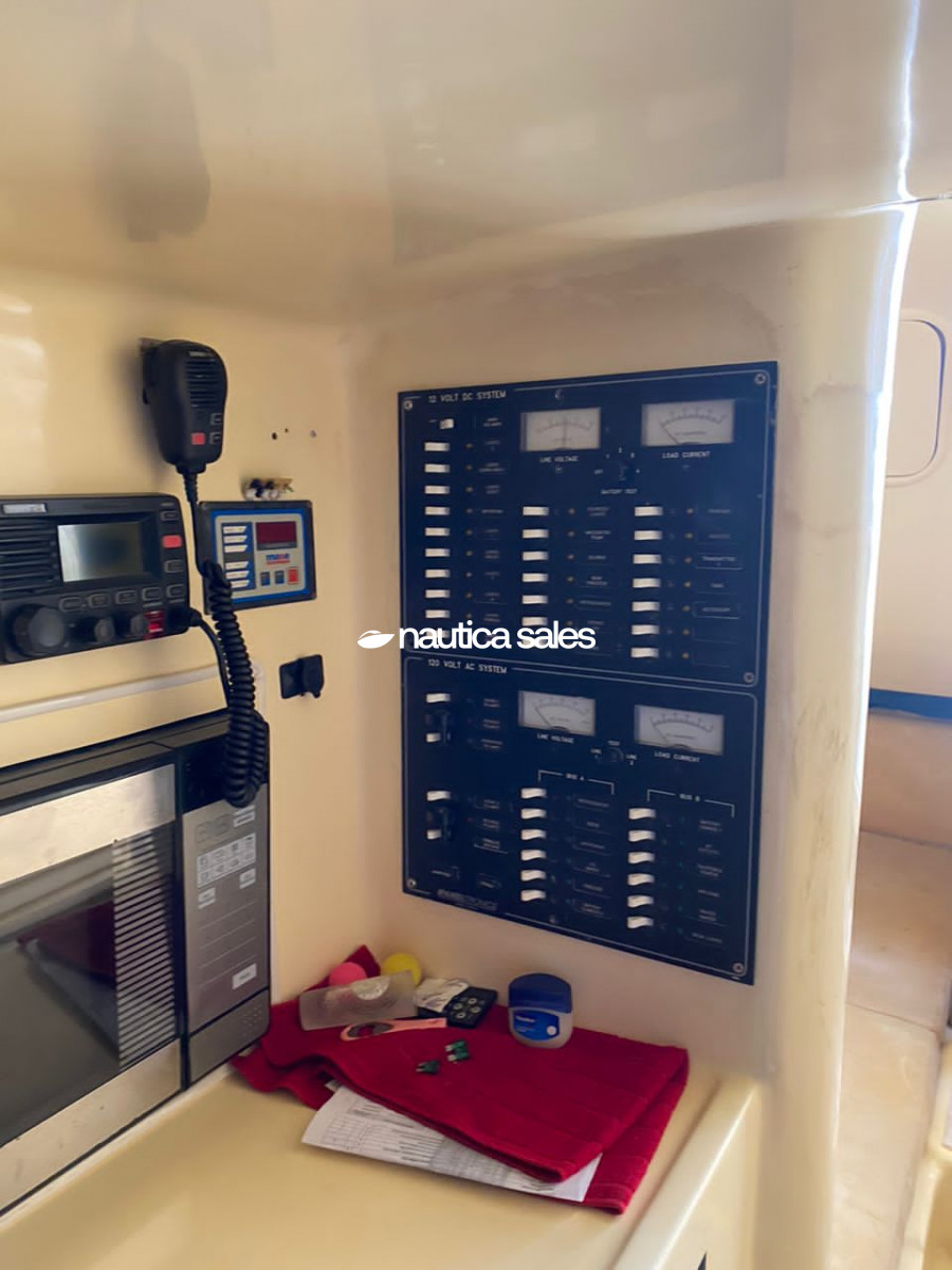 El centro de mando cuenta con equipos de ayuda a la navegación tales como: GPS Garmin, AIS Onwa y brújula. Cuenta con un camarote en proa, con aire acondicionado central, cocina, nevera y microondas.