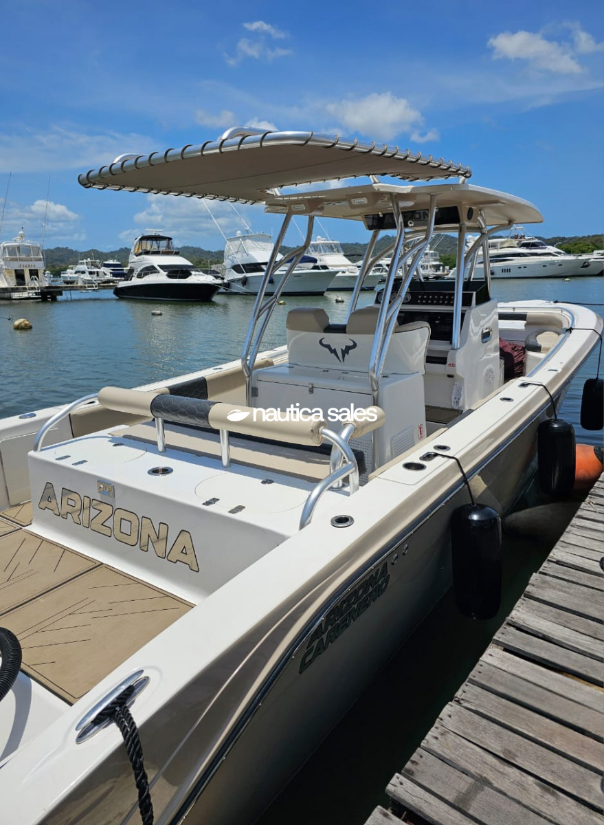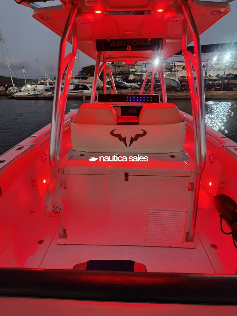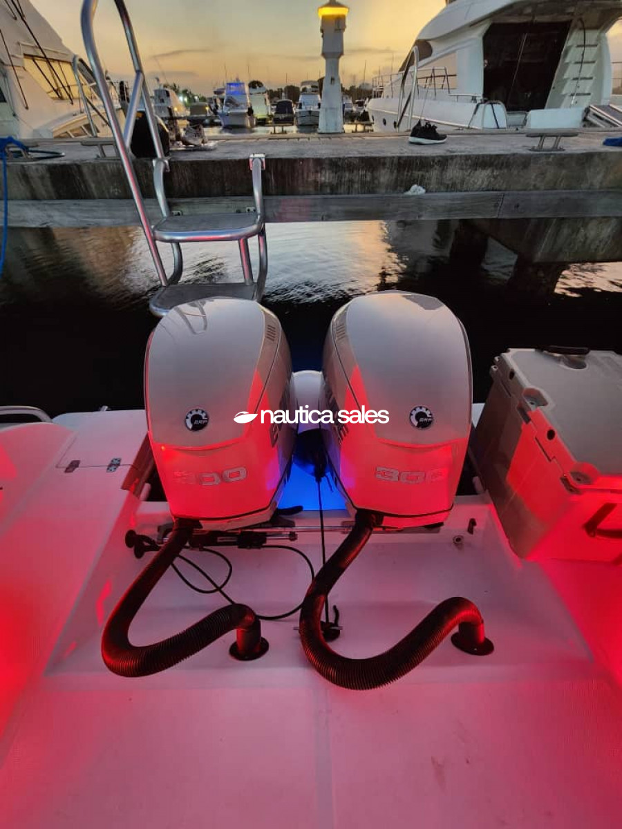 En venta Bull Marine modelo Stilus de 35 pies, año 2017, con motores Evinrude Itch de 300 caballos de fuerza, año 2013, con 360 horas de uso aproximadamente. Dispone de un tanque de combustible con capacidad para 1.400 litros y un tanque de agua con capacidad para 300 litros.