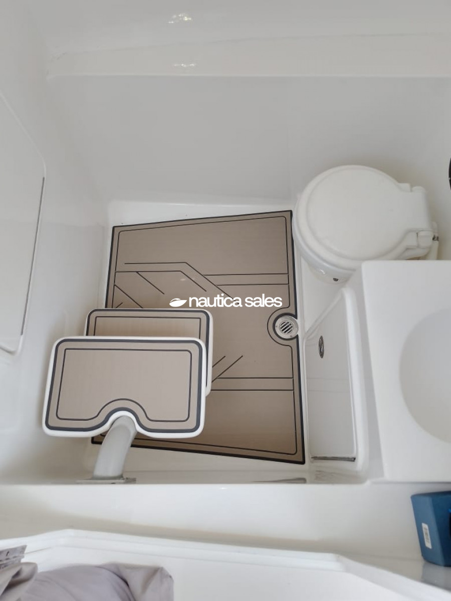 Cuenta con un pequeño camarote en proa con ducha, lavamanos e inodoro (todo nuevo).