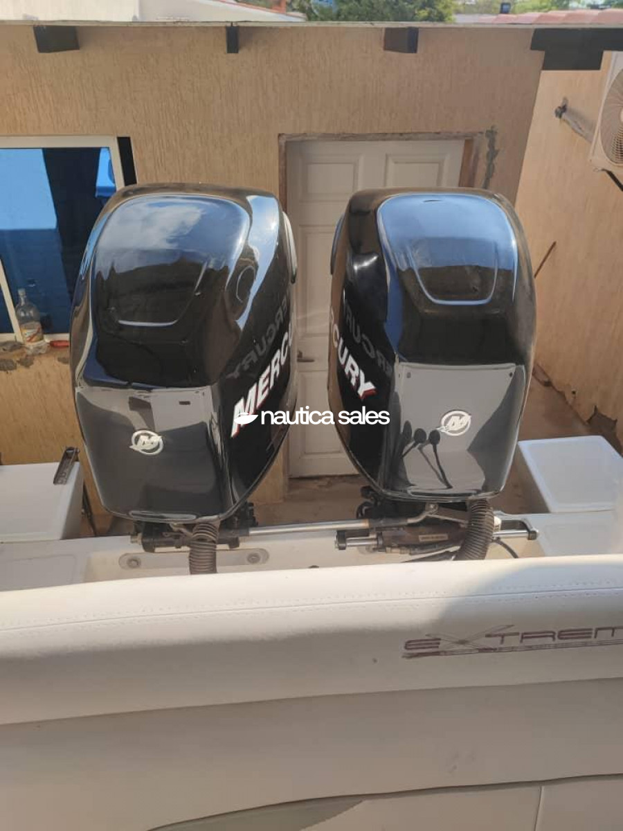 Se vende Extreme Marine de 30 pies, año 2012 con dos motores Mercury Optimax de 250 HP cada uno con 500 horas de uso aproximado. La embarcación es un open con mando central cuya tapicería se encuentra en muy buen estado de conservación. La estructura tubular del mando y tin top se encuentra en muy buen estado. La embarcación posee GPS marca Garmin, VHF, brújula, equipo de sonido y porta cañas. La venta incluye el trailer de hierro.