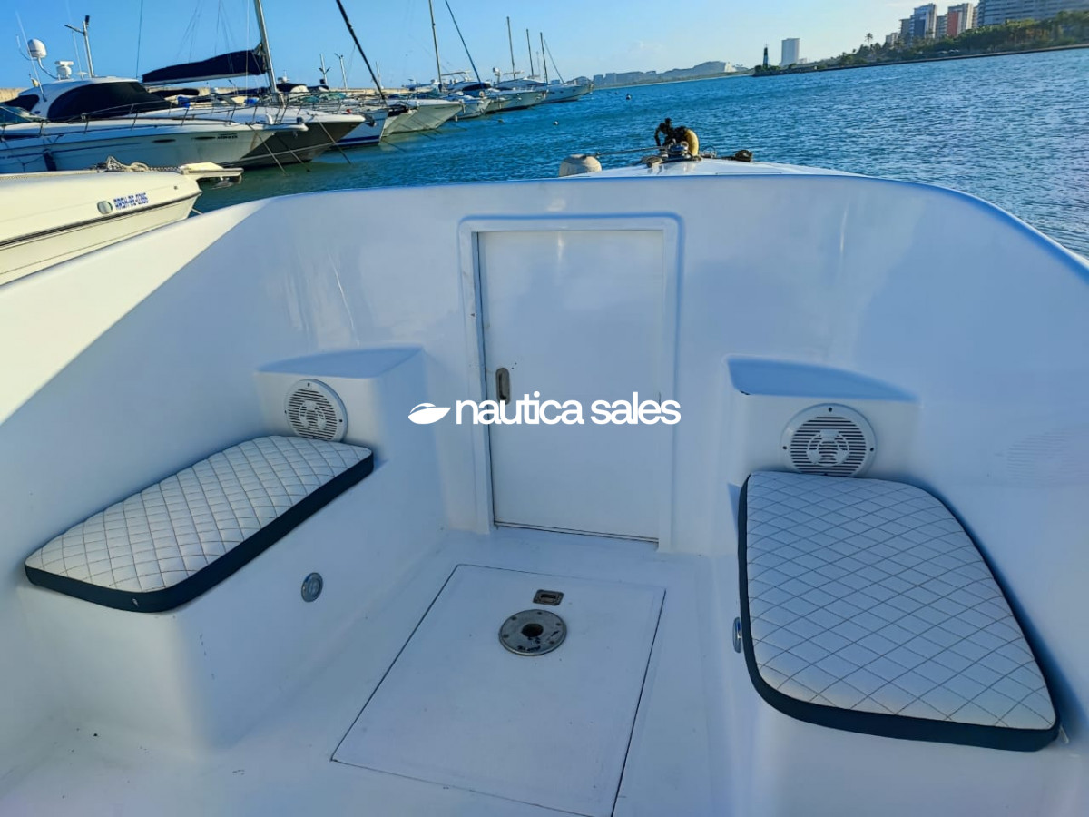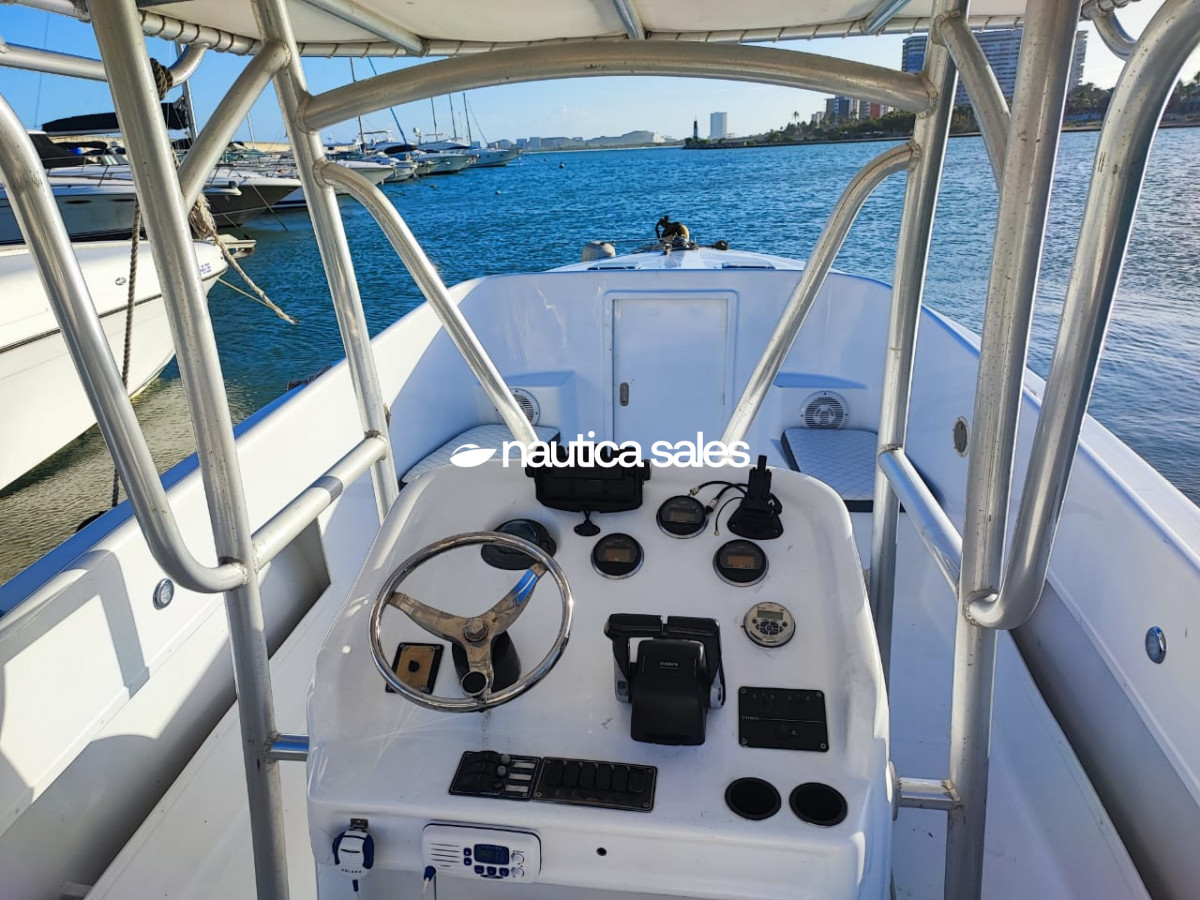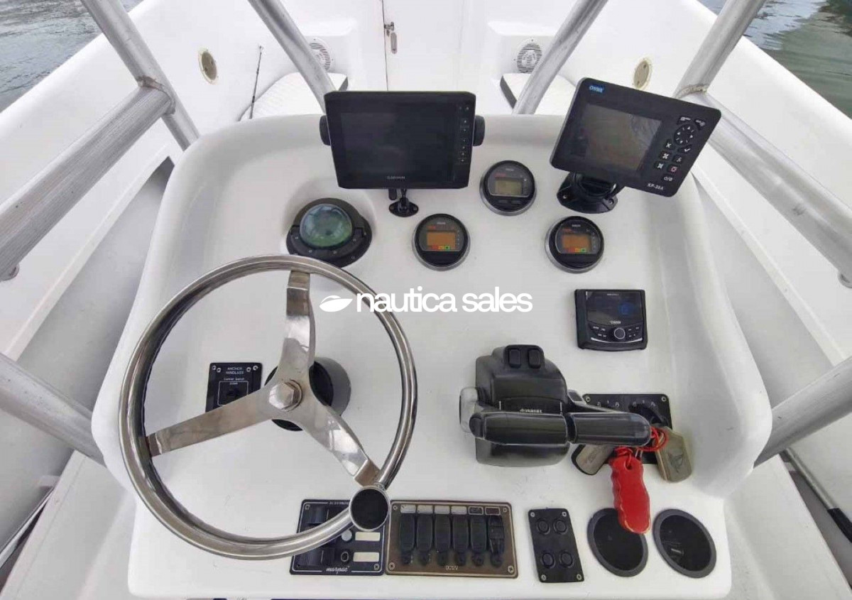 La lancha de consola central tiene todos sus equipos para la ayuda de la navegación: relojería, radio VHF, GPS Garmin, AIS Onwa con GPS integrado ecosonda, sistema satelital moderno instalado y brújula; además tiene reproductor de sonido con bluetooth nuevo y cornetas distribuidas por el área social de popa y proa.