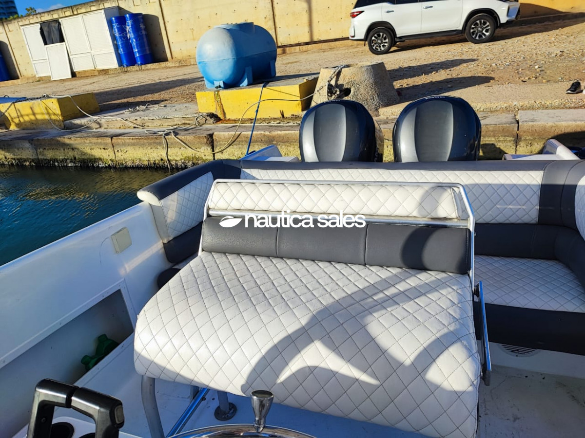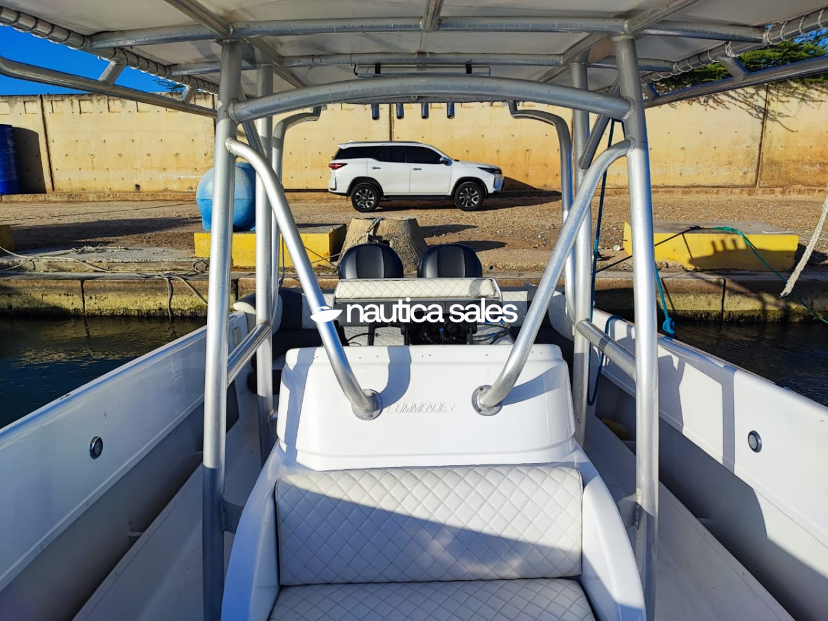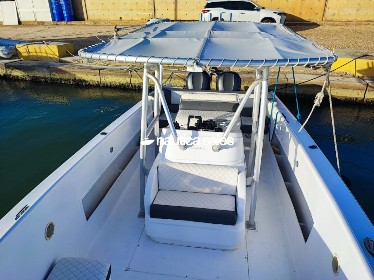 La lancha de consola central tiene todos sus equipos para la ayuda de la navegación: relojería, radio VHF, GPS Garmin, AIS Onwa con GPS integrado ecosonda, sistema satelital moderno instalado y brújula; además tiene reproductor de sonido con bluetooth nuevo y cornetas distribuidas por el área social de popa y proa.