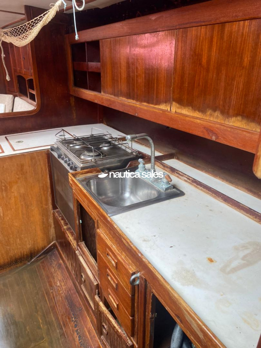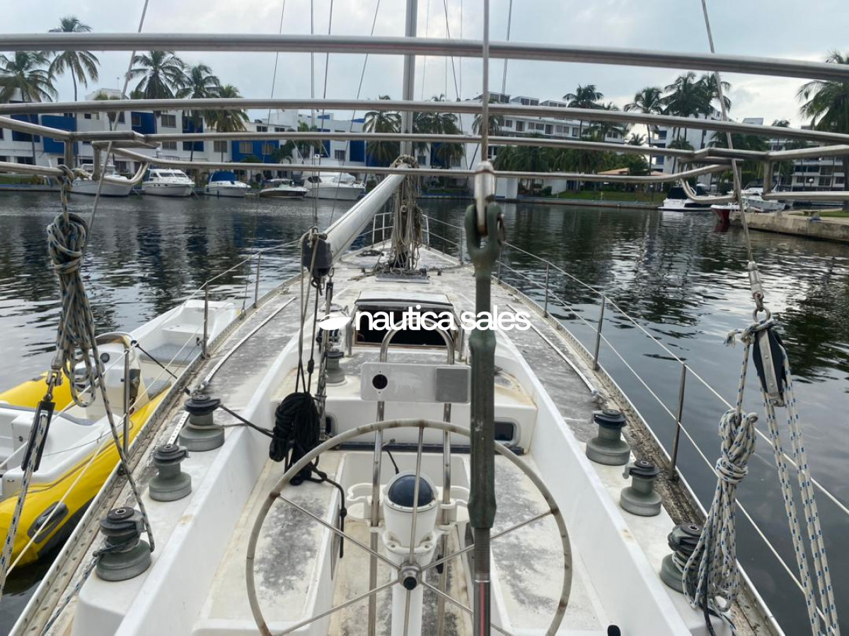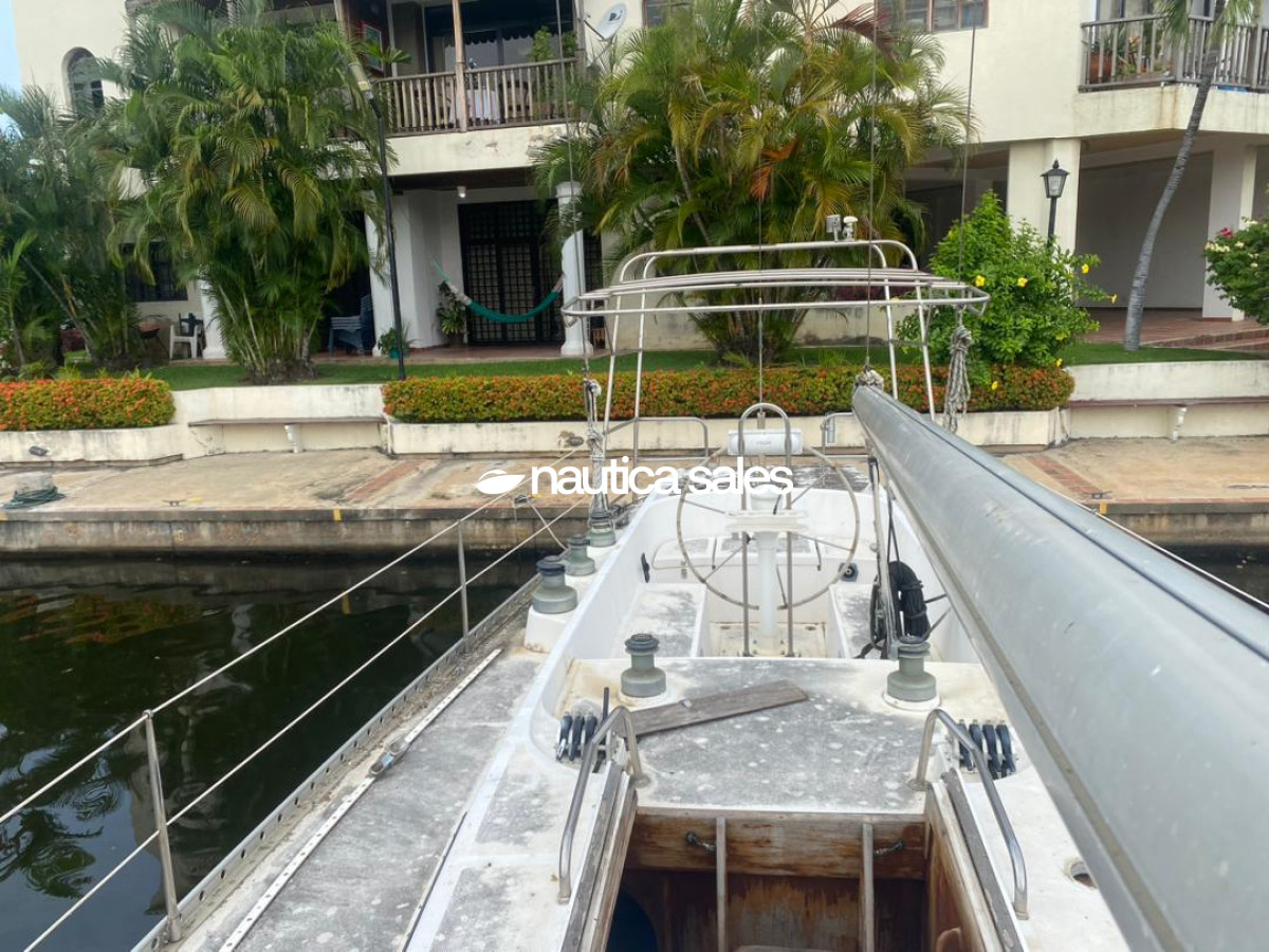 En venta velero marca Bosuns Marine modelos Quenn Hells, de 55 pies, cuenta con velas en buenas condiciones y motor Volvo Penta de 75 caballos de fuerza, con mantenimiento reciente (0 horas de uso).