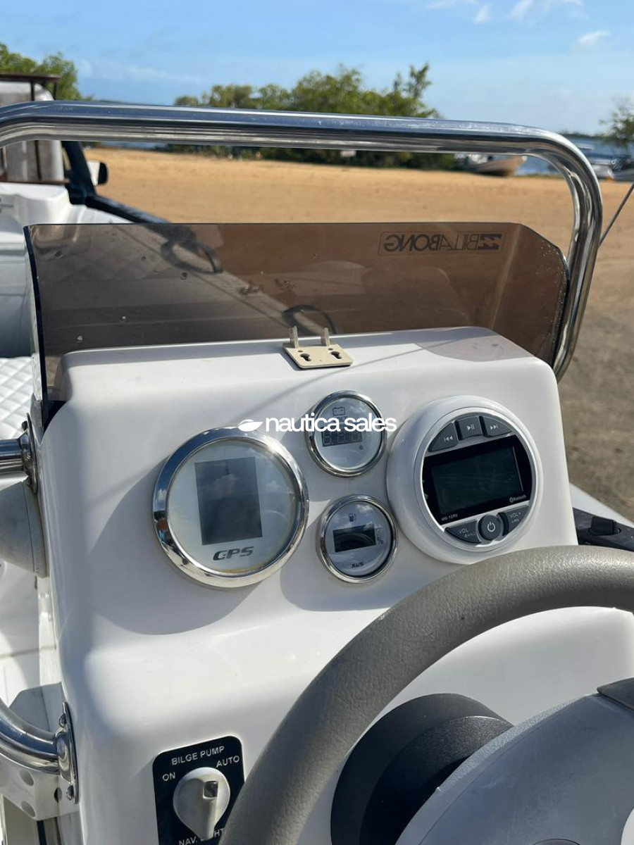 Cuenta con mando central, con radio VHF West Marine y relojería operativa, adicionalmente tiene de sonido con bajo JL Audio, 4 medios (2 JL Audio y 2 Rockford), luces internas, luces de navegación y luces Underwater.
