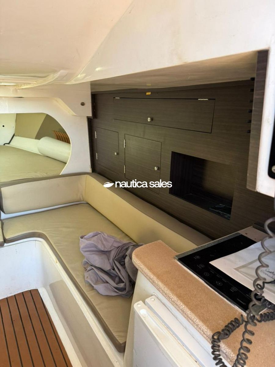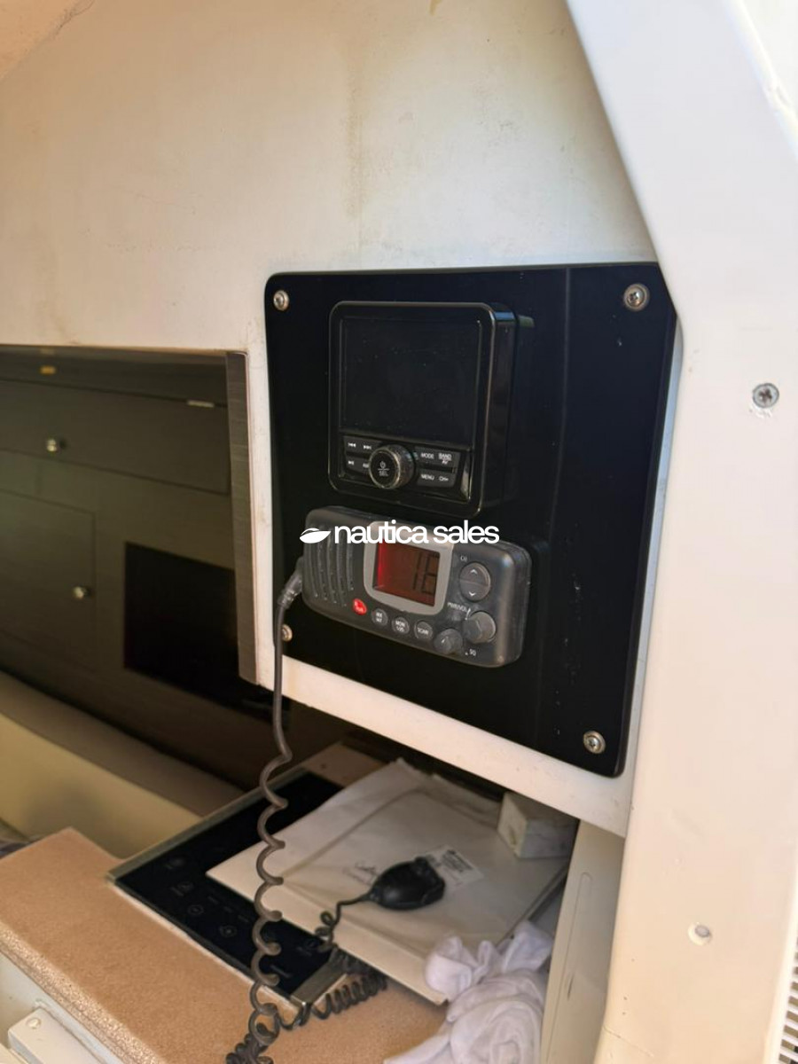 El centro de mando cuenta con radio AIS, VHF, GPS y brújula. Posee un camarote en proa con aire acondicionado y baño.