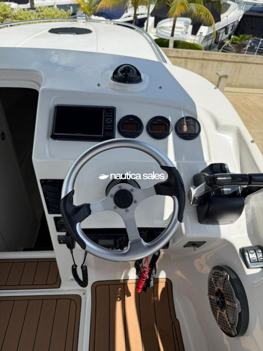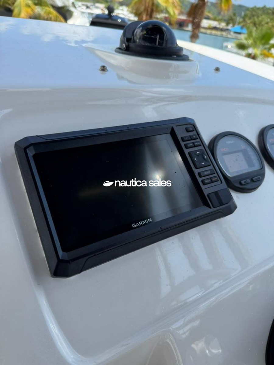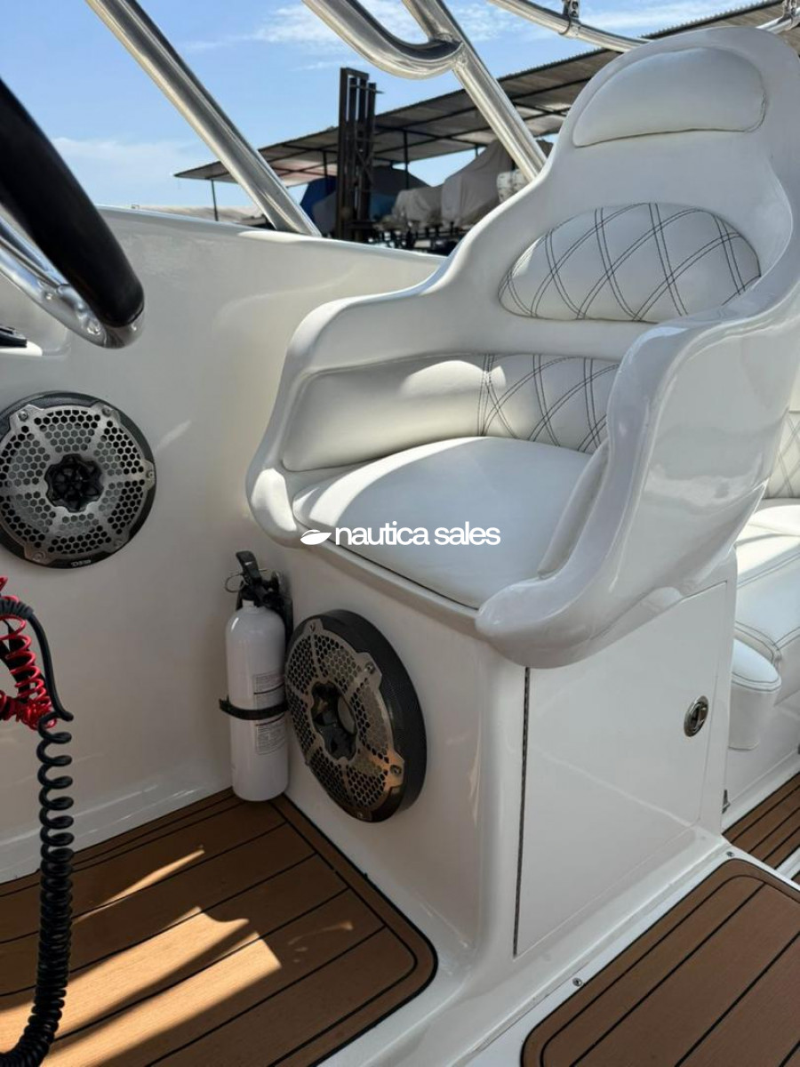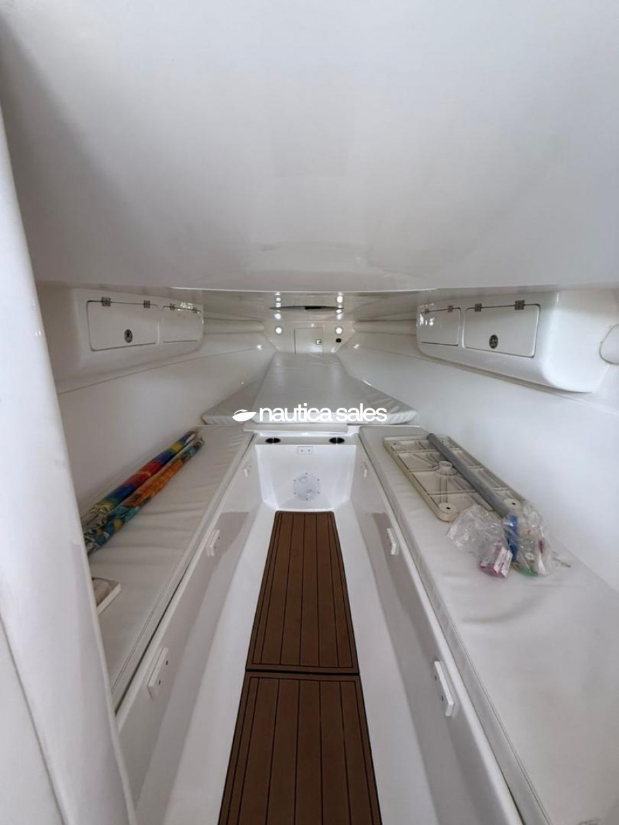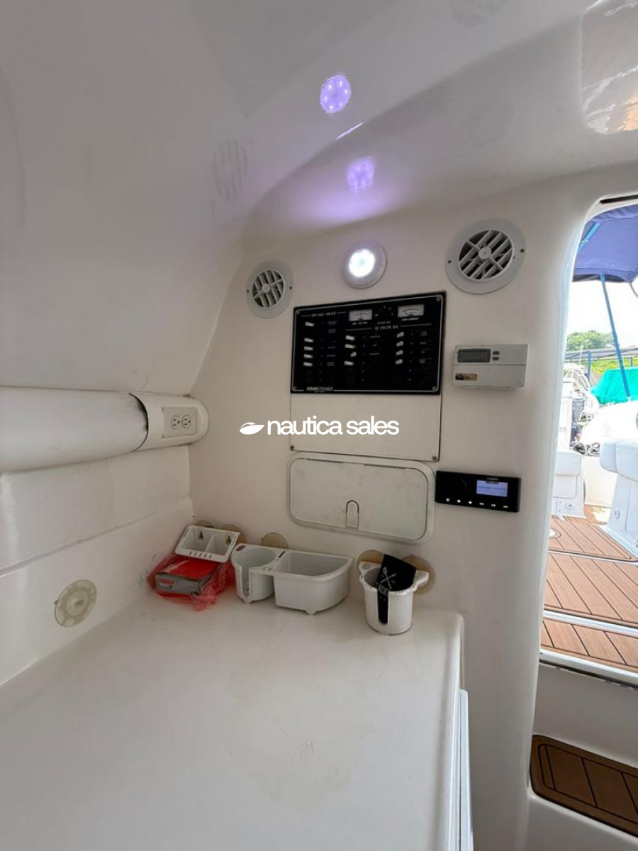 Tiene camarote en proa con aire acondicionado de 9000 BTU y baño; además la embarcación cuenta con reproductor de sonido Fusión nuevo, plantas de sonido, cornetas y bajos distribuidos por el área social de popa; luces de cortesía Lumitec de 4 colores, luces underwater Lumitec Seablaze x3 dos colores nuevas, winche Lewmar y estabilizadores.
