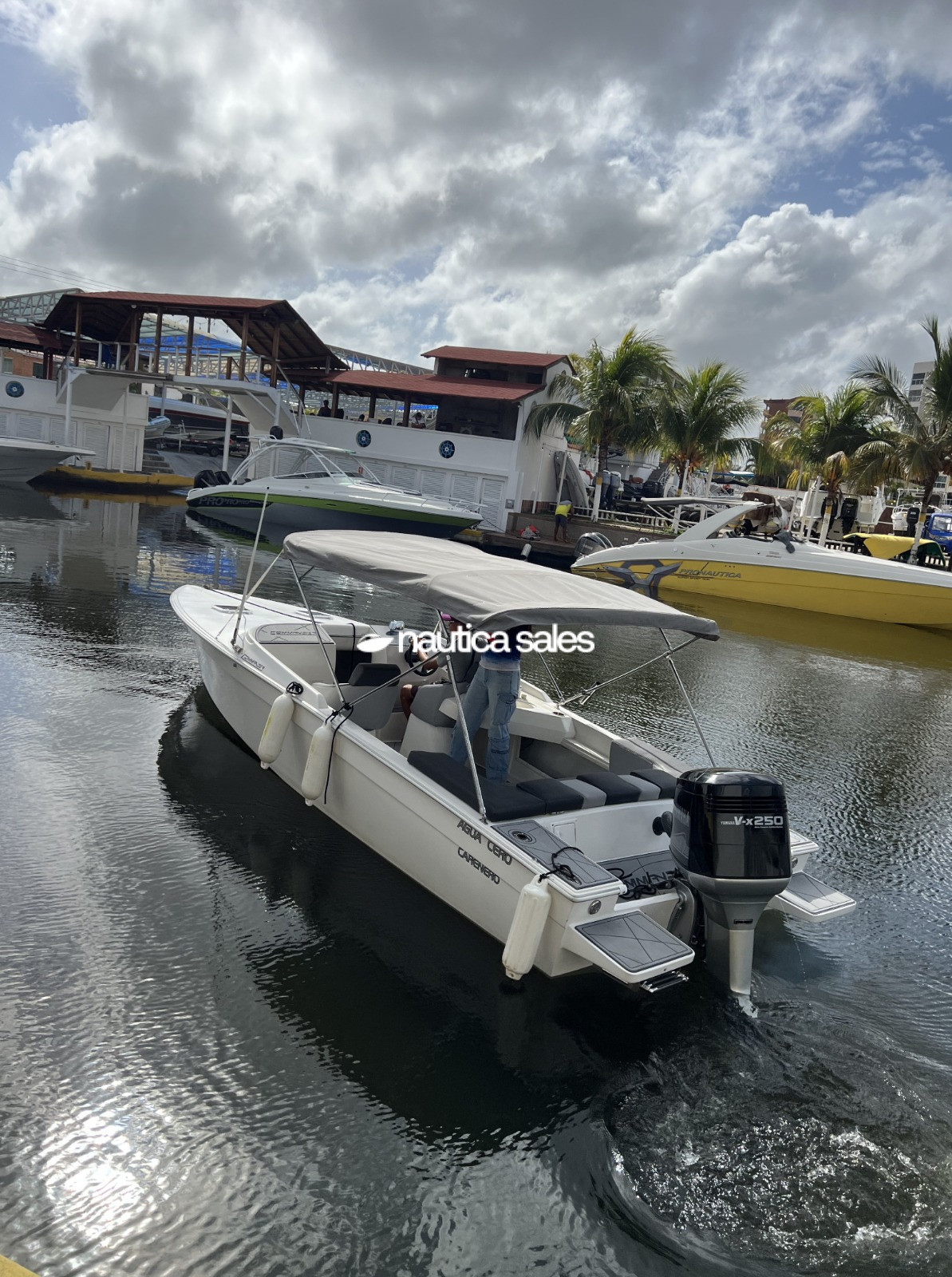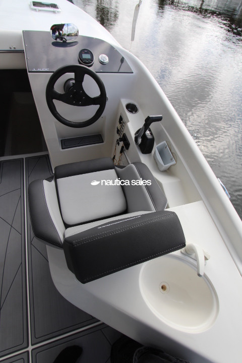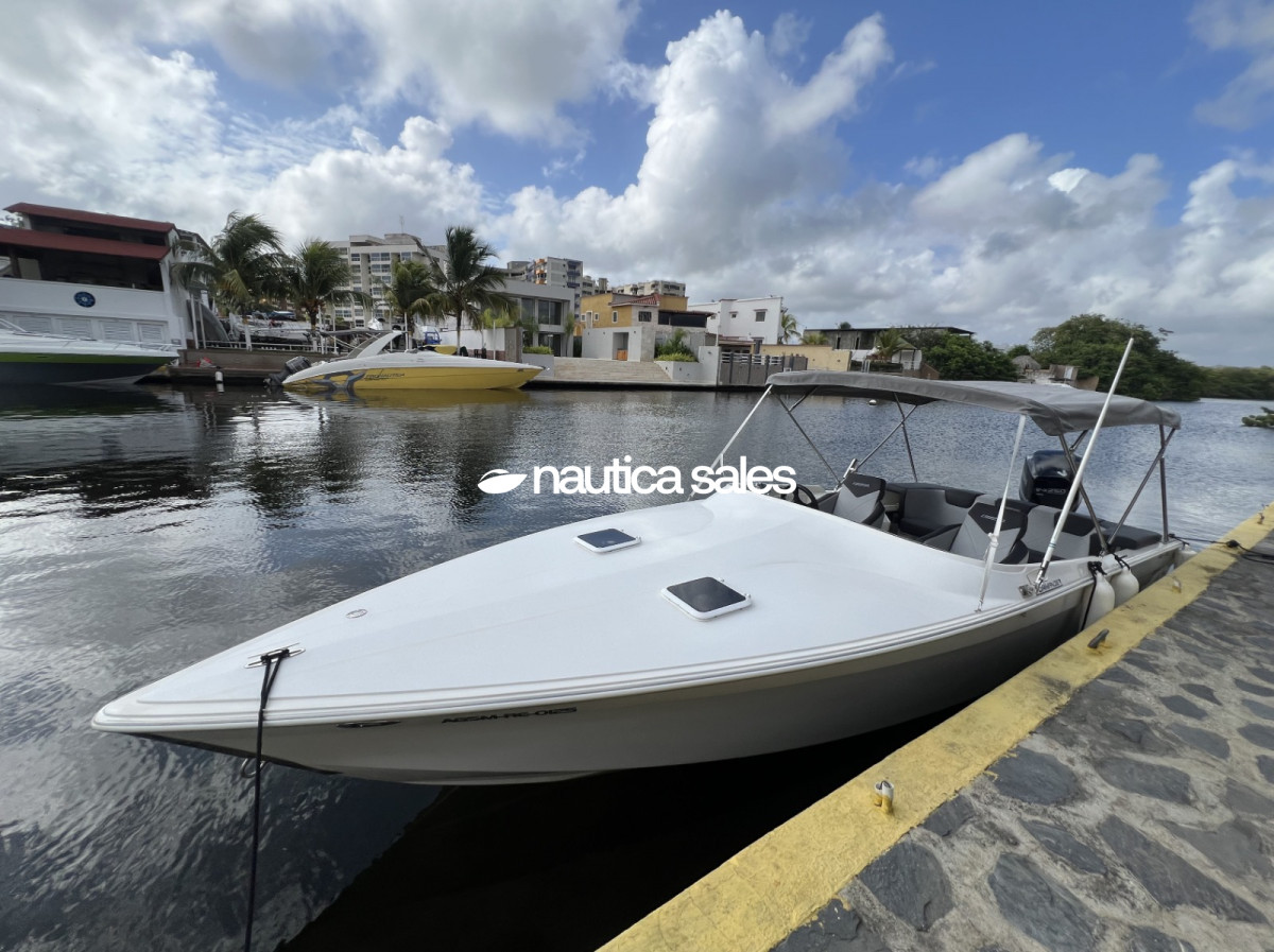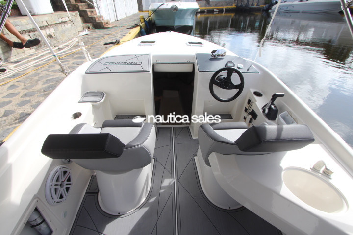 Adicionalmente la lancha tiene camarote en proa con colchonetas en forma de U, 2 anclas Fortress con cabos, ducha con agua dulce, bombas de achique, bombas de agua, 2 baterías Navigator y fenders.