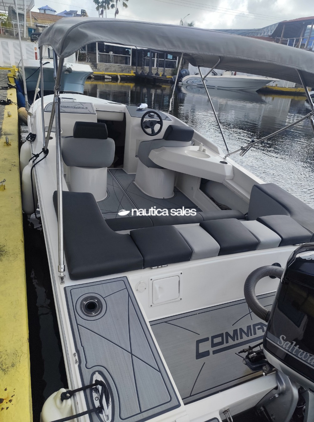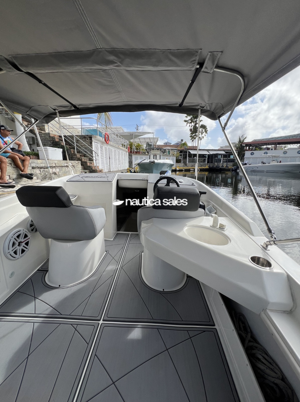 La estructura tubular del Tip Top y la lona del toldo esta en muy buenas condiciones al igual que la tapicería de color gris de los asientos de popa, asiento de piloto y de proa, ademas piso Sea Deck en excelente condiciones.